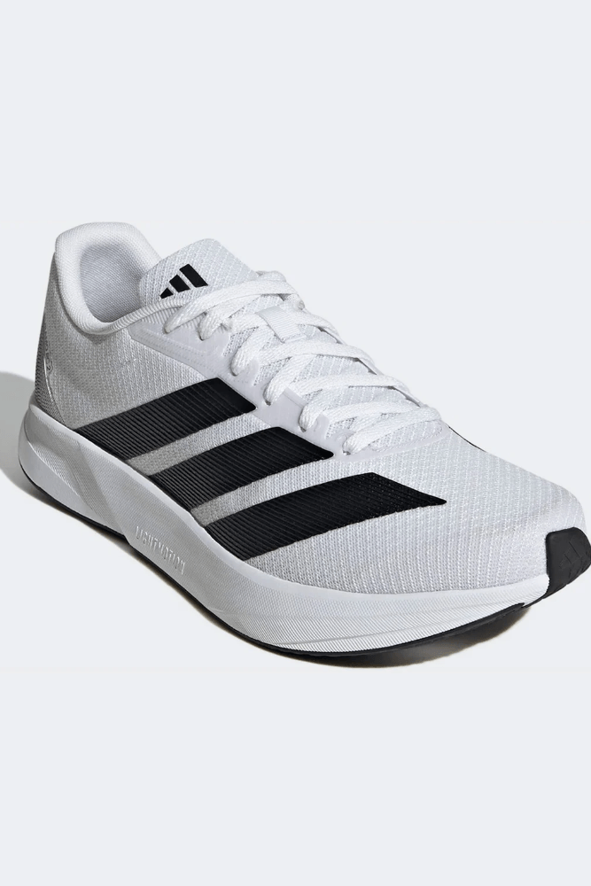O Tênis Adidas Duramo RC Masculino HQ0212 é uma opção versátil da Adidas para treinos e uso diário, com cabedal em mesh respirável que favorece ventilação constante e leveza. Possui biqueira arredondada que garante conforto aos dedos, fechamento por cadarço e construção têxtil estruturada. A lingueta e o colarinho são acolchoados, oferecendo ajuste suave e suporte ao tornozelo. Conta com palmilha em EVA e calcanheira reforçada, além de forro interno têxtil macio. O solado em borracha proporciona boa tração e grip, enquanto a entressola com tecnologia Lightmotion entrega amortecimento leve e absorção de impacto responsiva, com drop moderado e puxador traseiro que facilita o calce.
