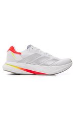O Tênis Adidas Duramo Speed 2 Running Corrida unissex If9392 apresenta um cabedal em malha respirável, oferecendo leveza e ventilação. A biqueira é reforçada para proteção e durabilidade. O fechamento é feito por atacadores, proporcionando ajuste firme e personalizado. A construção é em uma única peça, com costuras mínimas para reduzir o atrito. A lingueta é acolchoada, garantindo conforto, e o colarinho é também acolchoado, proporcionando estabilidade. A palmilha é de EVA, oferecendo amortecimento suave. A calcanheira é reforçada para maior suporte. O forro interior é em tecido macio. O solado é de borracha, com excelente tração e grip, ideal para corridas. O drop é de 10 mm, favorecendo uma corrida natural, com amortecimento responsivo e absorção de impacto eficaz. A entressola é em EVA, com boa flexibilidade. O puxador traseiro facilita o calce. O design é moderno, com detalhes de cores contrastantes e o logo da Adidas visível.