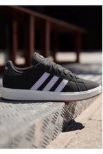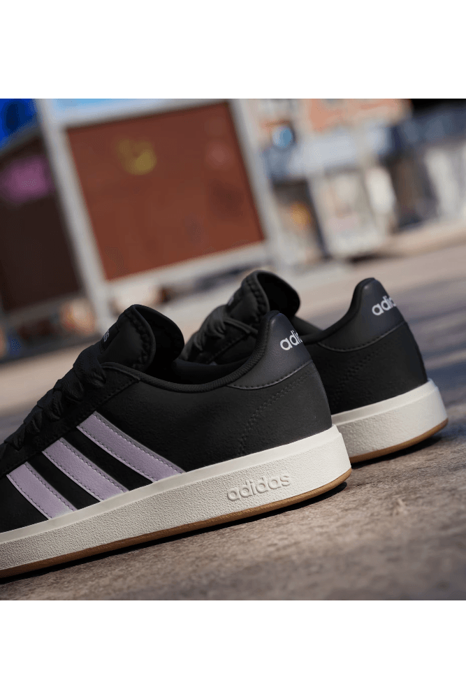 Combine o Tênis Adidas Grand Court Base 00s Feminino com uma calça jeans reta, camiseta branca básica e uma jaqueta de couro leve para um visual urbano e moderno. Acrescente uma bolsa tiracolo estruturada e óculos de sol para um toque sofisticado. Ideal para passeios na cidade ou encontros descontraídos com estilo e conforto.
