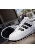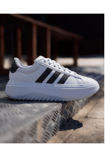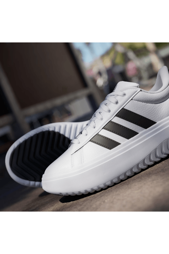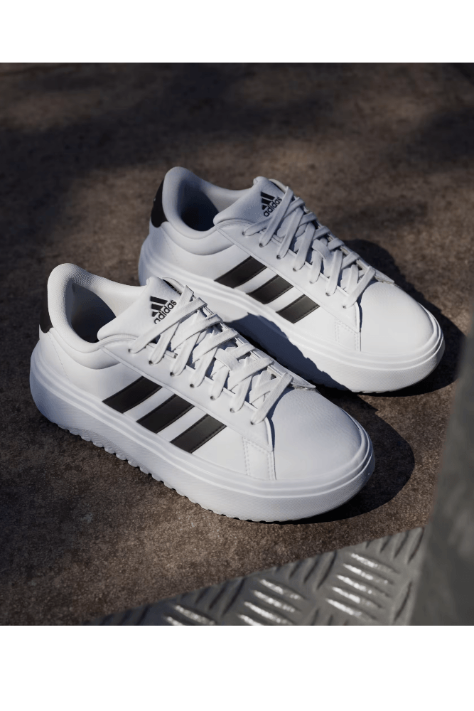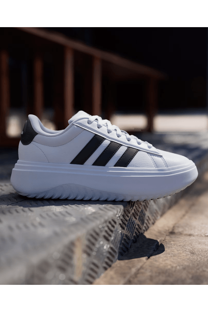 O Tênis Adidas Plataforma Grand Court Feminino IE1092 possui um cabedal minimalista em couro sintético, garantindo durabilidade e elegância. Seu bico tradicional confere um visual clássico, enquanto o fechamento por cadarço proporciona ajuste preciso. Com uma forma específica para mulheres, a palmilha de memória Cloudfoam e o forro interno garantem conforto excepcional. A entressola Cloudfoam oferece amortecimento a cada passo. O solado plataforma em EVA proporciona estabilidade e estilo, adaptando-se tanto para atividades esportivas quanto para uso casual. Este tênis combina o estilo retro dos anos 70 com tecnologia moderna, ideal para mulheres versáteis e ativas.