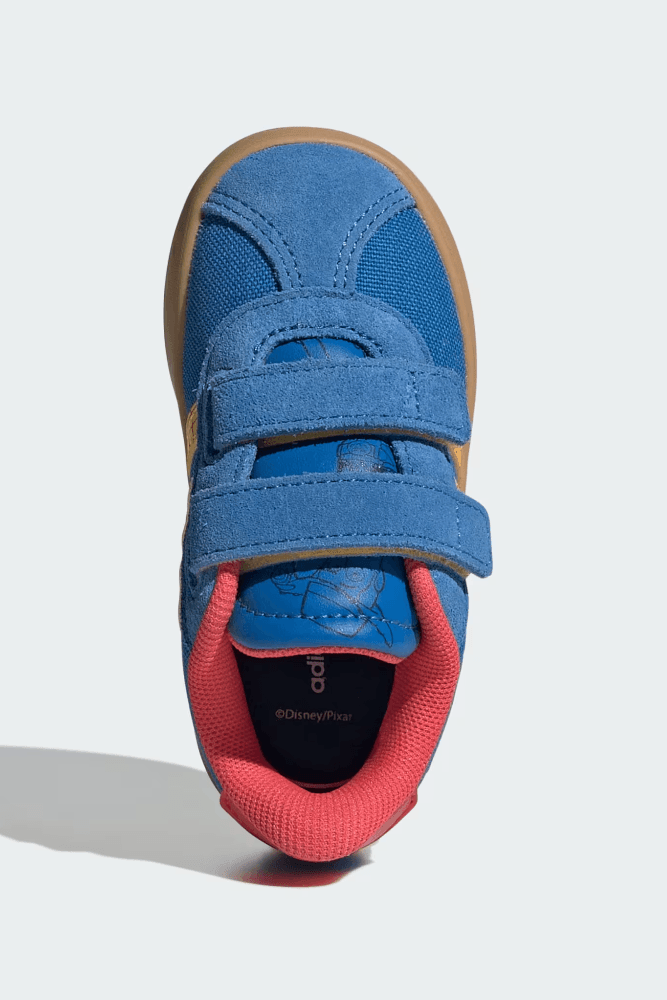 O Tênis Adidas Vl Court Toy Story Woody Infantil Menino Jq4381 é um tênis infantil casual da linha Adidas x Toy Story desenvolvido para o dia a dia das crianças. Possui cabedal em material sintético resistente e fácil de limpar, garantindo durabilidade e praticidade. O solado em borracha oferece aderência e estabilidade em diferentes superfícies. O bico arredondado proporciona conforto aos dedos, enquanto o fechamento em tiras aderentes de velcro facilita o calce rápido e seguro. O colarinho é acolchoado, com acabamento interno têxtil macio que evita atritos. A palmilha é confortável e a calcanheira reforçada auxilia na firmeza dos passos. Com estética inspirada no Woody, traz detalhes divertidos e logo Adidas em destaque. Seu design azul com elementos do personagem chama atenção e estimula o uso diário. O principal benefício é unir conforto, segurança e autonomia para a criança.