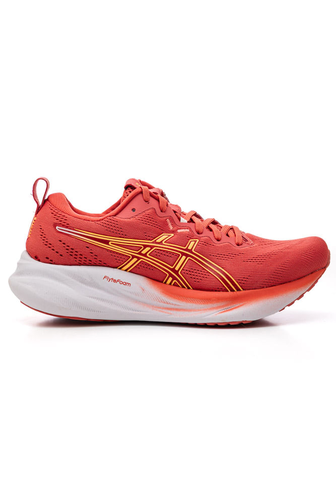 FlyteFoam™: Tecnologia de entressola feita com microfibras de celulose em espuma de EVA, oferecendo leveza extrema e conforto. Permite ajuste de densidade conforme a necessidade, garantindo durabilidade e desempenho. GEL™: Sistema de amortecimento localizado em pontos estratégicos como calcanhar e antepé, reduzindo o impacto em cada pisada. Proporciona proteção muscular, conforto e menor fadiga durante a atividade. AHAR Plus™: Borracha especial no solado com alta resistência à abrasão, mais leve e durável que a versão original. Garante maior flexibilidade, tração e vida útil ao calçado.