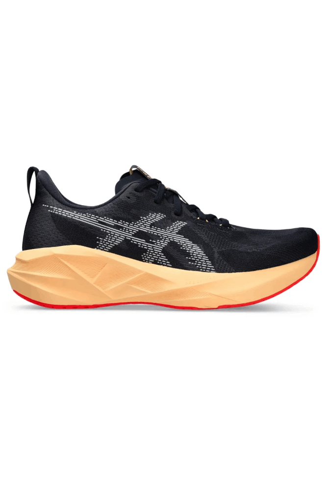 O Tênis ASICS Novablast 5 Masculino Esportivo 1011B974.404 possui cabedal em mesh respirável com material reciclado (75%) que proporciona elasticidade e ventilação. O fechamento é por cadarço, com colarinho e lingueta acolchoados e puxador traseiro para facilitar o calce. A palmilha é confeccionada com processo de tingimento sustentável, assim como o forro interior, que contribui para conforto térmico. A entressola com tecnologia FF BLAST™ MAX entrega máximo amortecimento e retorno de energia, com novo design geométrico que gera efeito trampolim. O solado em borracha AHAR™ LO garante tração, grip e durabilidade. O drop é elevado, ideal para pisada neutra/supinada em treinos ou longas corridas.