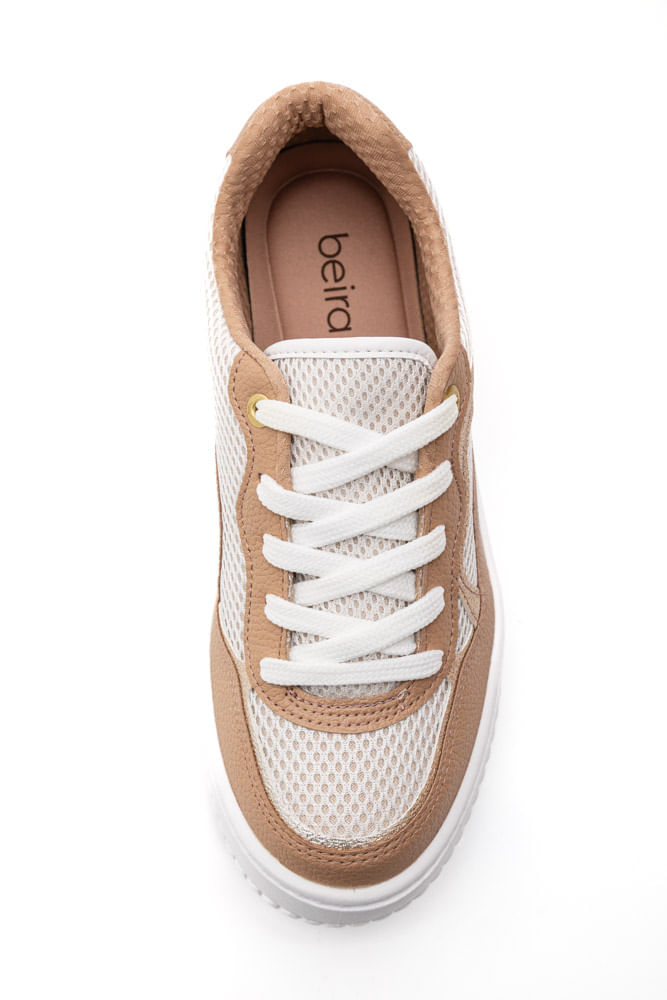 Para um look casual e estiloso com o Tênis Beira Rio Casual, combine jeans mom rasgado, camiseta branca básica e jaqueta jeans oversized. Acrescente uma bolsa transversal nude e óculos de sol dourados para harmonizar com os detalhes do tênis. Ideal para um passeio no shopping, encontro com amigas ou um café descontraído no fim da tarde.