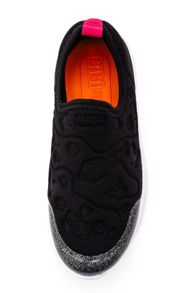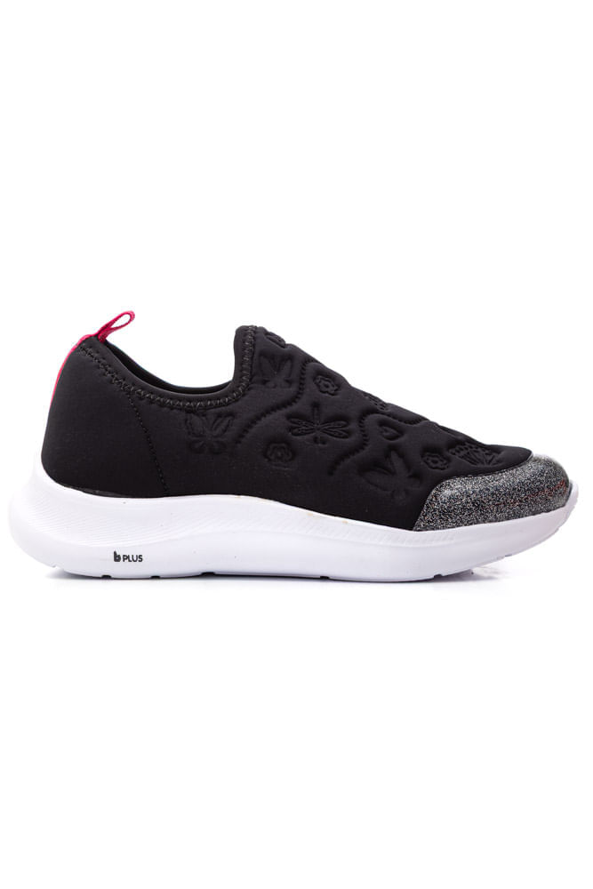 O Tênis Bibi Slip On Infantil Menina Action Eva 1167433 combina estilo, conforto e praticidade para o dia a dia. Da categoria casual infantil, possui cabedal em lycra preta com detalhes em pink glow e estampas de borboletas, oferecendo charme e personalidade. O bico arredondado, colarinho macio e fechamento slip-on facilitam o calce, enquanto o acabamento interno suave garante conforto total. A palmilha Fisioflex proporciona sensação de andar descalço e estimula o desenvolvimento saudável dos pés, e a calcanheira acolchoada adiciona proteção extra. O solado em EVA leve oferece tração segura, tornando cada passo estável e divertido. Ideal para aventuras, escola e lazer.