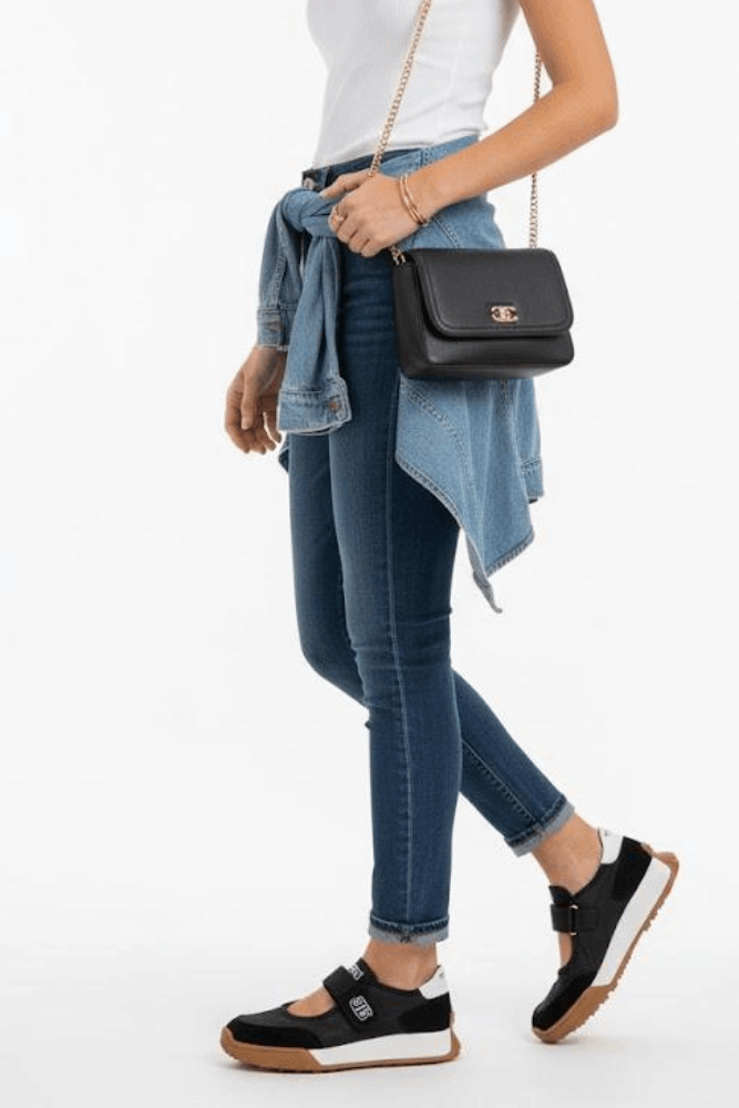 Combine o tênis Bottero em couro com uma calça jeans mom, camiseta básica branca e uma jaqueta de couro preta para um visual urbano e moderno. Complete com uma bolsa transversal e acessórios minimalistas. Ideal para um passeio no fim de semana, garantindo conforto, estilo e praticidade em cada movimento.