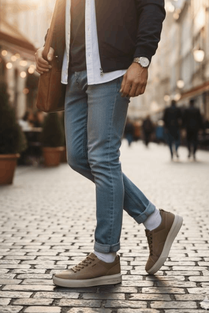 Combine o Tênis Pegada Flow 111902-08 com uma calça chino bege e uma camisa de linho azul claro para um look casual e elegante. Finalize com um cinto de couro marrom e um relógio minimalista, ideal para transitar do escritório ao happy hour com estilo e conforto.