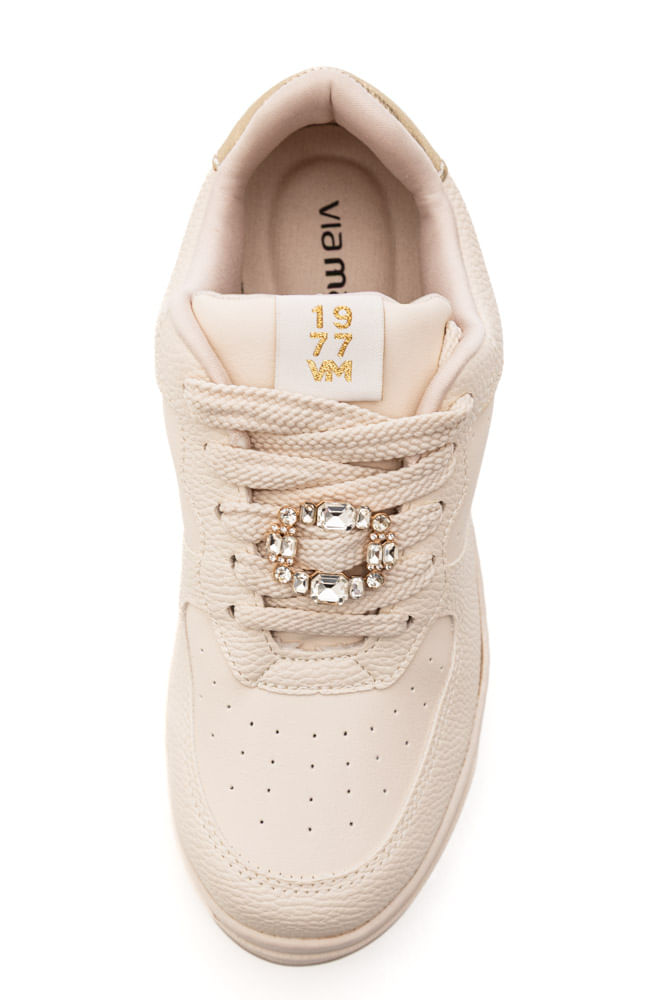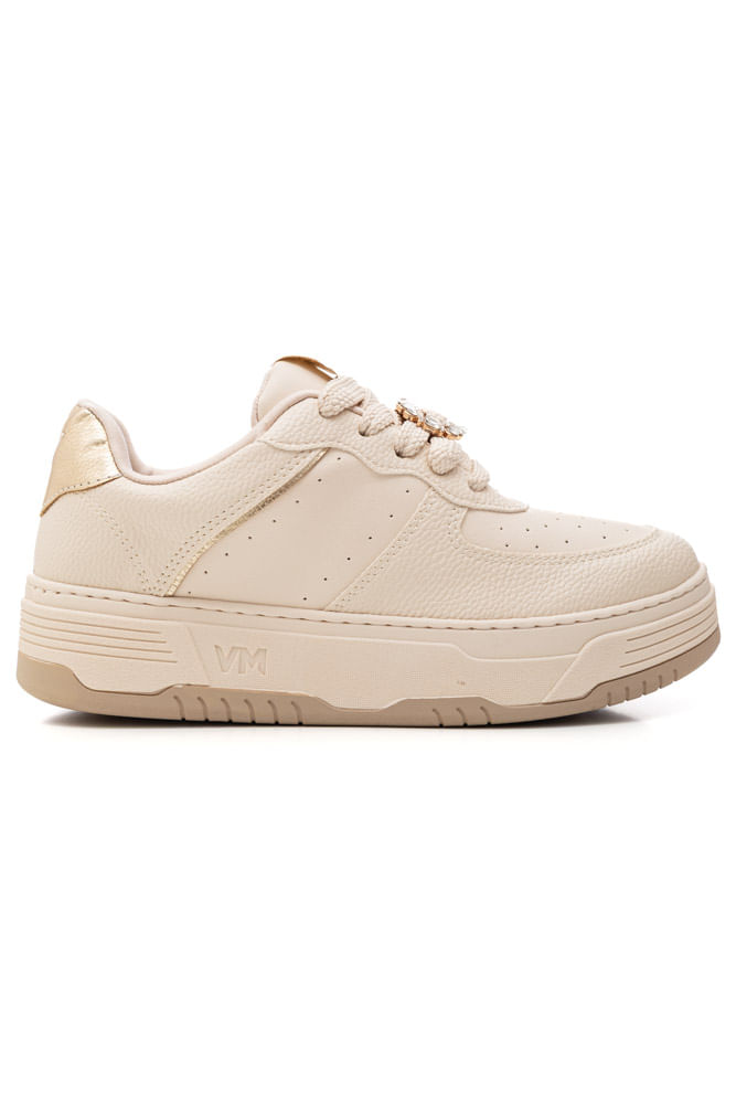 O Tênis Casual Via Marte Feminino 225-008-07 é um calçado da categoria tênis casual feminino, confeccionado em material sintético tipo new floater-napa-metal dakar, garantindo durabilidade e estilo moderno. Seu cabedal apresenta detalhes de perfuros que oferecem respirabilidade, enquanto o fecho é tradicional por cadarço com passadores de strass, facilitando o ajuste e adicionando sofisticação ao visual. O bico arredondado proporciona conforto, e o colarinho acolchoado garante proteção ao tornozelo. A palmilha macia e a calcanheira reforçada com acabamento interno em tecido poliéster proporcionam conforto durante todo o dia. A sola de PVC expandido, junto ao solado de 4,5 cm, oferece estabilidade e resistência, tornando o tênis seguro para caminhar. Sua estética combina modernidade e charme, e o destaque fica por conta do brilho dos strass, tornando-o ideal para quem busca estilo, conforto e praticidade em um único calçado.