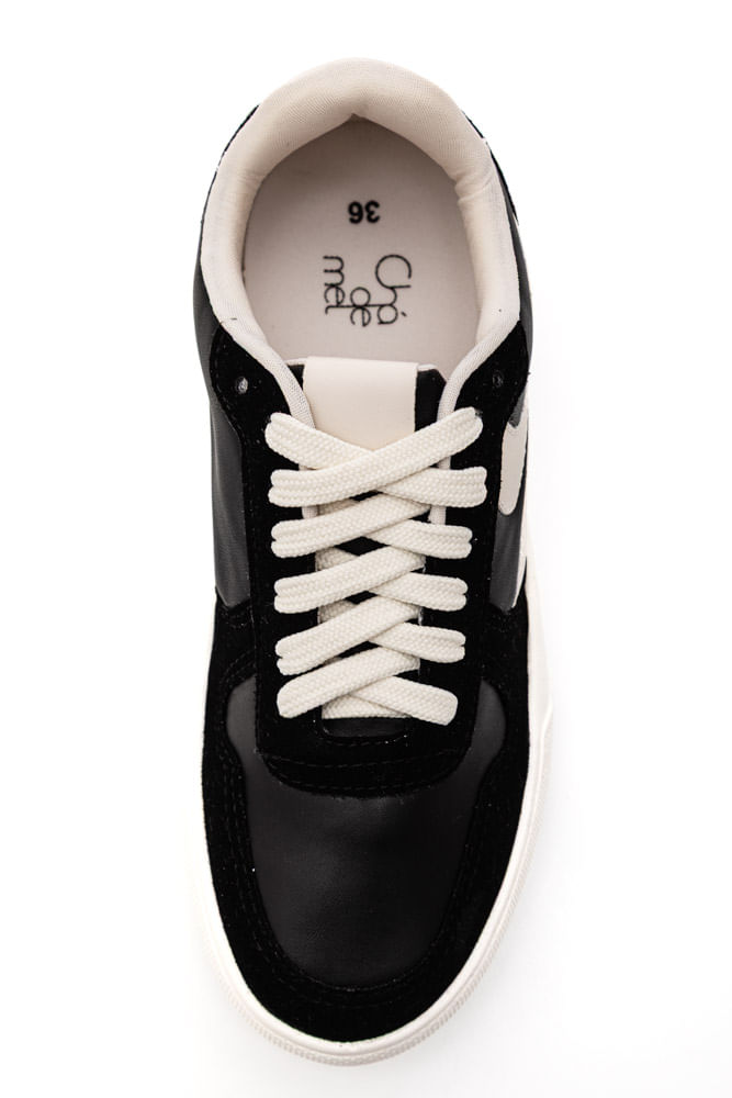 Para um look casual e estiloso com o Tênis Chá De Mel, combine-o com calça jeans larga de cintura alta, camiseta básica de algodão e jaqueta jeans oversized. Finalize com uma bolsa tiracolo e acessórios minimalistas. Ideal para passeios, encontros informais ou um dia de trabalho descontraído.