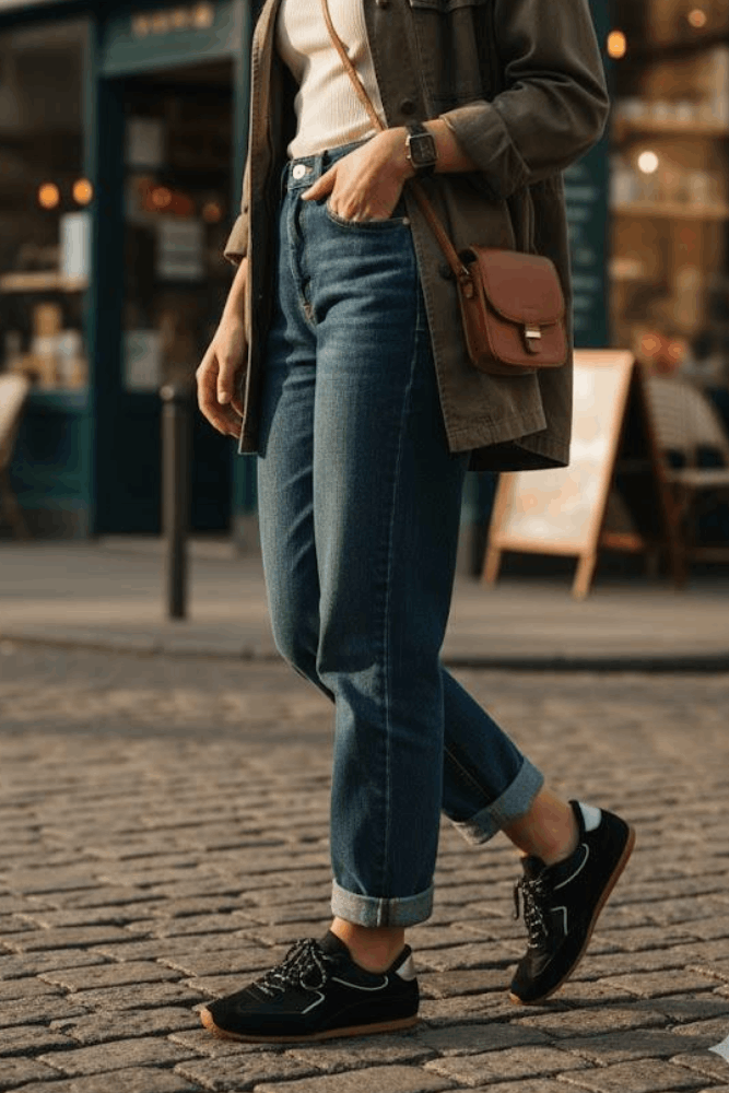 Combine o Tênis Chá De Mel casual com uma calça de alfaiataria cropped, camiseta branca básica e um blazer leve em tom neutro. Finalize com bolsa transversal estruturada e acessórios delicados. O resultado é um look moderno, confortável e versátil, perfeito para encontros casuais ou compromissos do dia a dia.
