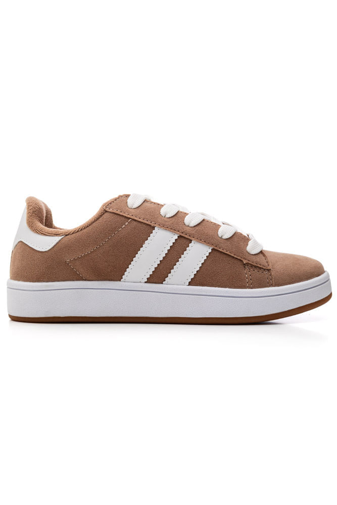 Tênis Chá De Mel Casual Feminino Em Camurça Rc9100 Bege