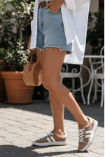 Para um passeio casual ou encontro descontraído, combine o Tênis Chá De Mel Casual com uma calça jeans slim clara e uma blusa de malha. Complete o look com um cardigan leve ou jaqueta bomber, acessórios discretos e uma bolsa transversal. O resultado é um visual moderno, confortável e cheio de estilo, perfeito para o dia a dia.