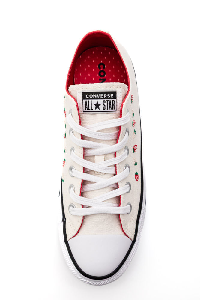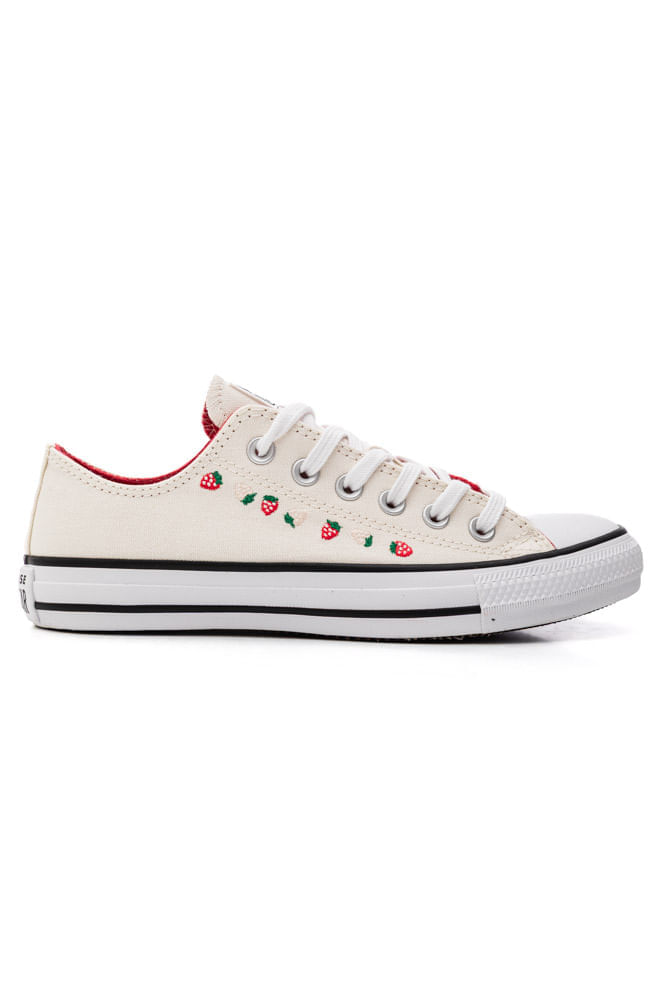 O Tênis Converse All Star Casual Feminino Strawberries Ct31090001 é perfeito para quem busca estilo e conforto com um toque divertido. Feito com cabedal em lona 100% algodão, oferece durabilidade e respirabilidade. A sola de borracha garante segurança e aderência em qualquer superfície. Seu bico arredondado clássico alia charme e praticidade, enquanto o fechamento por cadarço de algodão permite um ajuste confortável e personalizado. O forro interno em poliéster e a palmilha com estampa exclusiva, inspirada nas sementes do morango, aumentam o conforto durante o uso. Com bordados delicados de morangos, esse modelo traz personalidade única e originalidade para seus looks do dia a dia.