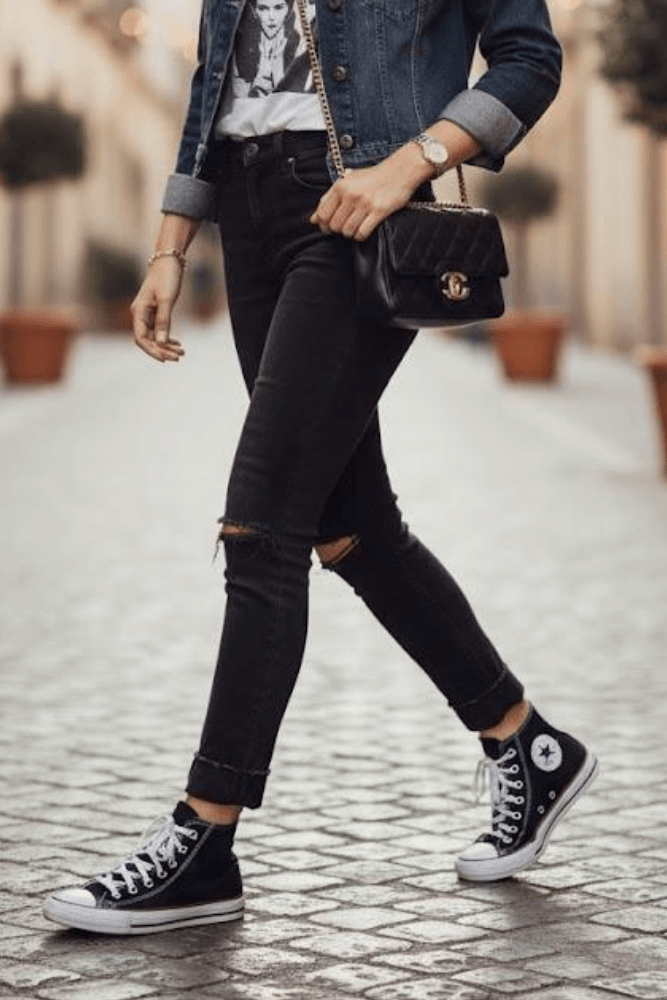 Combine o Tênis Converse Chuck Taylor All Star Core Hi com uma calça cargo e uma camiseta oversized para um visual urbano e descolado. Outra opção é usar uma jaqueta bomber e calças jeans rasgadas, criando um estilo casual e moderno. Experimente uma camisa de flanela com calças de moletom para um look confortável e estiloso. Para uma pegada esportiva, aposte em um conjunto de agasalho e finalize com acessórios minimalistas.