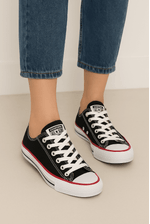 O Tênis Converse Chuck Taylor All Star Core CT00010007 é um clássico atemporal desde 1917, reconhecido por seu cabedal em lona de algodão e biqueira de borracha. Sua silhueta icônica de cano baixo apresenta o patch lateral com a estrela distintiva. Com palmilha em EVA para conforto duradouro e solado de borracha com padrão de diamante para aderência. Originalmente um tênis de basquete, tornou-se um símbolo de rebeldia e autenticidade, adotado por diversas subculturas ao longo das décadas, permanecendo como um dos sneakers mais icônicos de todos os tempos.