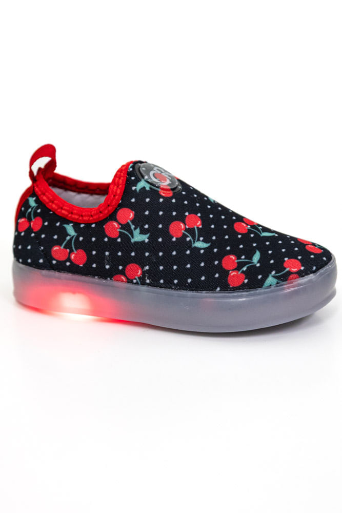 Para um look encantador e confortável, combine o Tênis Crik LED Cereja com um vestido rodado vermelho ou jeans, jaquetinha leve e tiara combinando com a estampa de cereja. Ideal para passeios no parque, festinhas ou eventos escolares, o visual une diversão, estilo e praticidade, com o charme extra das luzes que acendem a cada passo.