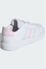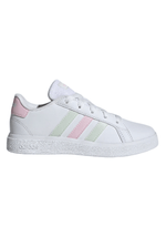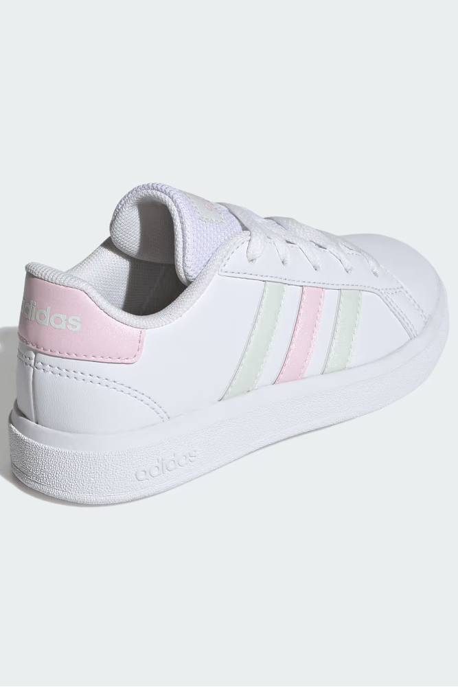 O Tênis Grand Court 2-0 Infantil Menina Ih4886 pertence à categoria casual-esportiva, ideal para o dia a dia. Seu cabedal sintético, feito com ao menos 50% de material reciclado, é leve, resistente e fácil de limpar. O bico arredondado garante conforto, enquanto o fecho em cadarço oferece ajuste firme e seguro. De fácil calce, conta com colarinho acolchoado, palmilha macia e calcanheira que proporciona estabilidade. O acabamento interno em material sintético garante suavidade ao toque. A sola de borracha apresenta excelente aderência e flexibilidade, permitindo passadas mais seguras. Com estética inspirada no estilo das quadras dos anos 70, traz detalhes clássicos que chamam a atenção. Um benefício marcante é sua combinação de conforto, durabilidade e design atemporal, perfeito para acompanhar as pequenas com estilo e confiança.