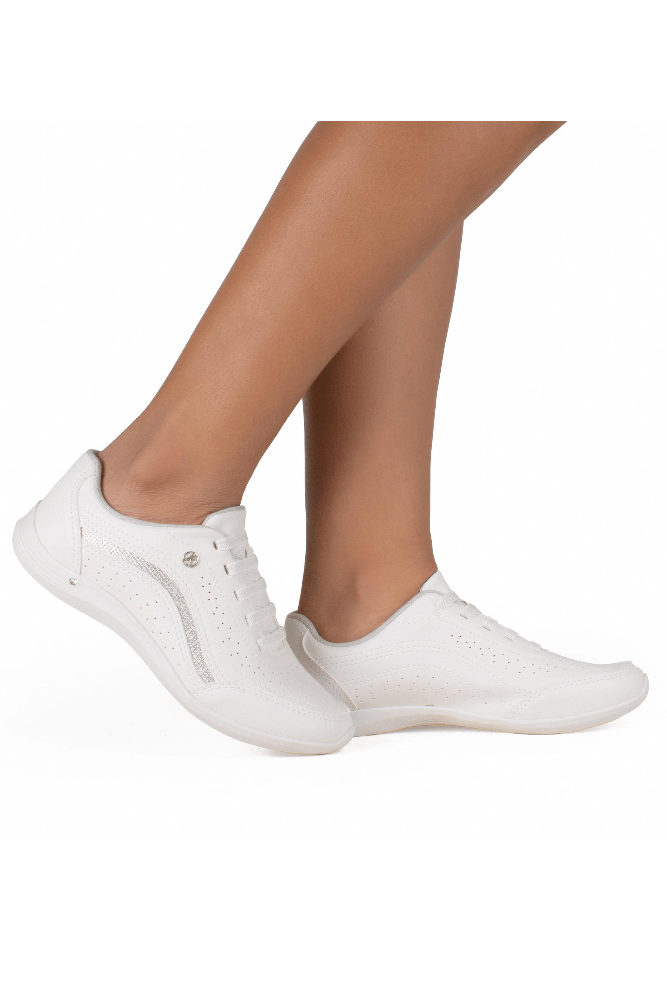 O Tênis Kolosh Casual Feminino Calce Fácil C3184a-02 é a escolha perfeita para quem busca unir conforto, praticidade e estilo em um único calçado. Feito em material sintético, seu cabedal com microfuros garante excelente respirabilidade, ideal para os dias mais quentes. O modelo apresenta bico arredondado, calce fácil com elásticos sobre o peito do pé e colarinho macio, que proporciona ajuste anatômico e conforto extra. Sua sola Touch+ de 3,2 cm, emborrachada e leve, oferece flexibilidade e estabilidade ao caminhar. A palmilha em EVA molda-se aos pés, enquanto o acabamento interno suave e o detalhe lateral com strass e pin metalizado completam o visual moderno e sofisticado. Um tênis versátil, que combina leveza e elegância em cada passo.