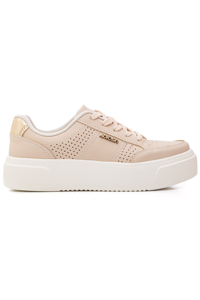 O Tênis Kolosh Casual Feminino Flatform C3556-03 é ideal para quem busca estilo e conforto no dia a dia. Da categoria casual, ele possui cabedal em material sintético com acabamento interno macio, microfuros e costuras aparentes que garantem um visual moderno e respirabilidade. Seu bico é arredondado e o fechamento é por cadarço ajustável, oferecendo um calce prático e seguro. A sola caixa em EVAfit de 4 cm proporciona leveza e ótima absorção de impacto, enquanto a palmilha em EVA impermeável garante conforto prolongado. O toque metalizado e o pin lateral da marca valorizam o visual, destacando sua autenticidade e versatilidade.