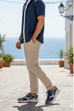 Para um look casual e moderno com o Tênis Mizuno Hawk 6, combine uma calça jogger bege, camiseta oversized branca e jaqueta jeans oversized. Acessórios discretos, como relógio minimalista e mochila de couro preta, completam o visual. Esse conjunto une conforto e estilo, perfeito para passeios, encontros informais ou atividades do dia a dia, mantendo praticidade e sofisticação.