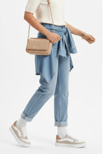 Para um look casual e charmoso, combine o Tênis Moleca com uma calça jeans reta, camiseta branca básica e uma jaqueta jeans ou cardigan leve. Finalize com uma bolsa tiracolo e acessórios discretos. Ideal para um passeio no shopping, café com amigas ou compromissos do dia a dia, unindo conforto, praticidade e estilo sem esforço.