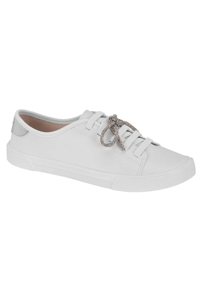 O Tênis Moleca Flow Feminino Elástico 5296 561 é a combinação perfeita de conforto e estilo para o seu dia a dia. Feito em napa, seu cabedal traz um toque sofisticado e moderno, com um delicado laço em strass que adiciona charme ao visual. O fechamento em cadarço elástico garante ajuste seguro, enquanto a sola em borracha proporciona aderência e estabilidade. Seu bico arredondado e o acabamento interno macio oferecem máximo conforto a cada passo. Além disso, a palmilha acolchoada e a calcanheira reforçada garantem bem-estar durante todo o uso. Ideal para quem busca praticidade sem abrir mão da elegância!