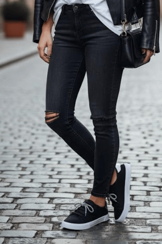 Para um look casual e estiloso, combine o Tênis Moleca Flow com uma calça jogger de moletom, uma blusa cropped canelada e uma jaqueta jeans oversized. Acessórios como uma bolsa transversal minimalista e brincos pequenos dourados completam o visual. Perfeito para um passeio ou encontro descontraído, unindo conforto e sofisticação!