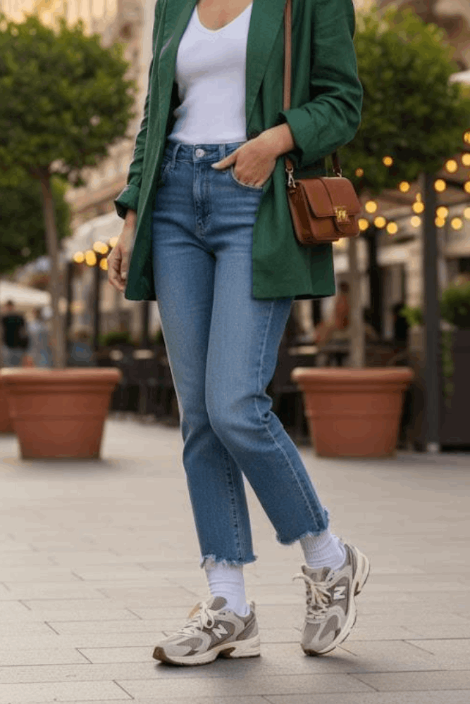 Para um look casual e estiloso com o New Balance 530, combine com uma calça jogger ou leggings pretas e uma camiseta oversized para conforto e praticidade. Adicione uma jaqueta bomber ou um moletom por cima, criando um visual esportivo e moderno. Finalize com acessórios minimalistas, como um boné e uma mochila, para um toque de estilo sem perder o conforto.