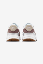 Os pontos de toque no calcanhar e na língua criam uma sensação natural ao calçar e remover o tênis. Design simples e limpo apenas com aplicações do logo da marca estilizado nas laterais e a tipografia na língua.
