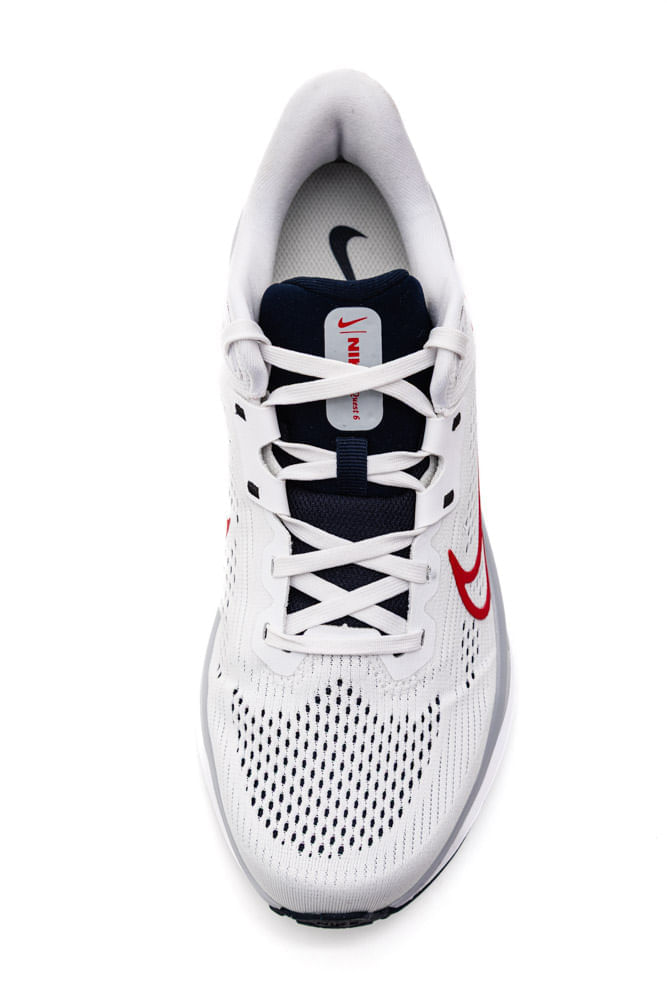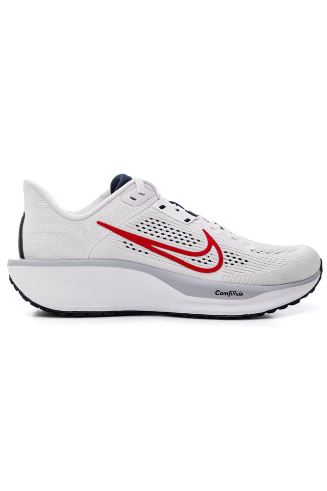 O Tênis Nike Quest 6 Masculino Corrida FD6033-107 possui cabedal em mesh respirável que oferece leveza e ventilação estratégica, com faixa de suporte no mediopé para ajuste firme. Seu material de fabricação combina têxtil com sintético de alta durabilidade. A biqueira é reforçada para proteção dos dedos, e o fechamento é por cadarço (atacador) tradicional. A construção é leve com lingueta macia e colarinho acolchoado, proporcionando conforto. A palmilha é anatômica e removível, enquanto a calcanheira oferece suporte estável. O forro interior é têxtil suave ao toque. O solado é feito de borracha com ótimo grip e tração para o asfalto. Conta com drop elevado, entressola com espuma macia para amortecimento responsivo e puxador traseiro para facilitar o calce. Estilo esportivo, design moderno e detalhe da faixa no mediopé que garante segurança e visual arrojado.