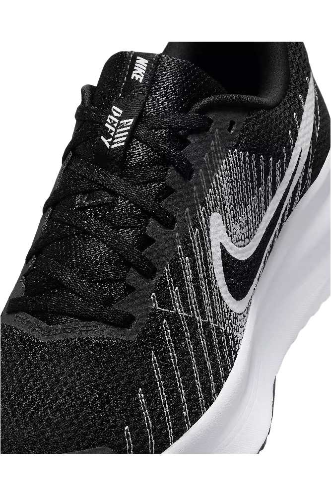 O Tênis Nike Run Defy Corrida Masculino Hm9594-004 possui cabedal em malha respirável que garante ventilação, com biqueira reforçada para proteção. O fechamento é feito por atacadores tradicionais, com puxador traseiro para facilitar o calce. A lingueta e o colarinho são acolchoados para conforto e suporte ao tornozelo. A palmilha e a calcanheira oferecem amortecimento interno macio. O forro interior é suave, garantindo conforto durante a corrida. A entressola em espuma proporciona amortecimento responsivo e absorção de impacto, favorecendo uma passada leve e estável. O solado Waffle, fabricado em material durável e flexível, oferece grip e tração confiáveis em diferentes superfícies. Ranhuras flexíveis no solado aumentam a flexibilidade e conforto. O design é moderno e funcional, com detalhes minimalistas que reforçam o estilo e a performance do tênis.