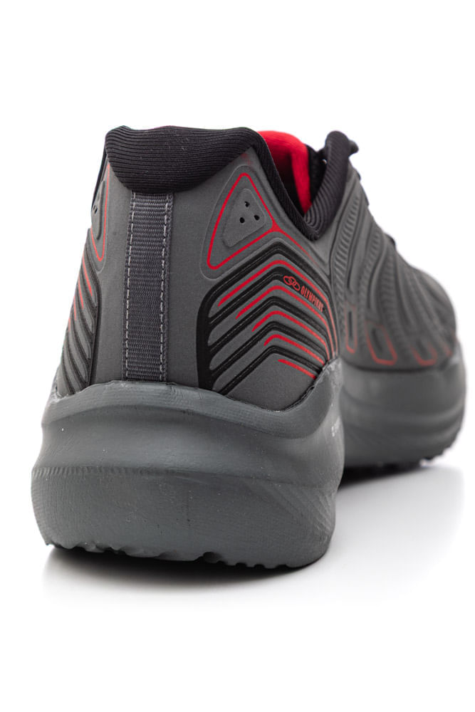Modelo com fechamento em cadarço para maior praticidade, além de se encaixar na linha calce fácil. Palmilha em EVA com dupla espuma memória viscoelástica conforme desenho do pé, entressola em EVA com sulcos flexíveis para maior capacidade de resposta de longa duração, contendo espessura diferenciada onde estabelece uma maior estabilidade, amortecimento e flexibilidade na região do antepé, assim aumentando o desempenho pois agrega um caimento anatômico. Este sistema de amortecimento combina e agrega com a biomecânica sólida da sola onde é elaborado antiderrapante, que proporciona maior aderência aos diferentes tipos de solo devido seus recortes, obtendo mais tração seja no ambiente seco ou molhado além de uma retorno maior de energia.