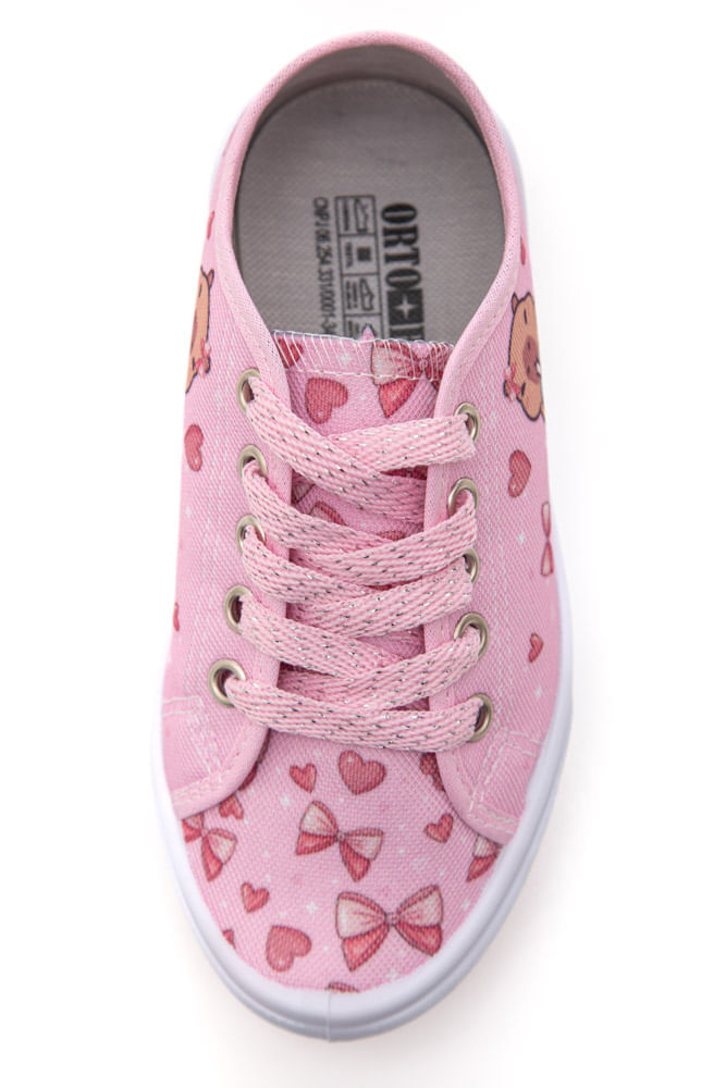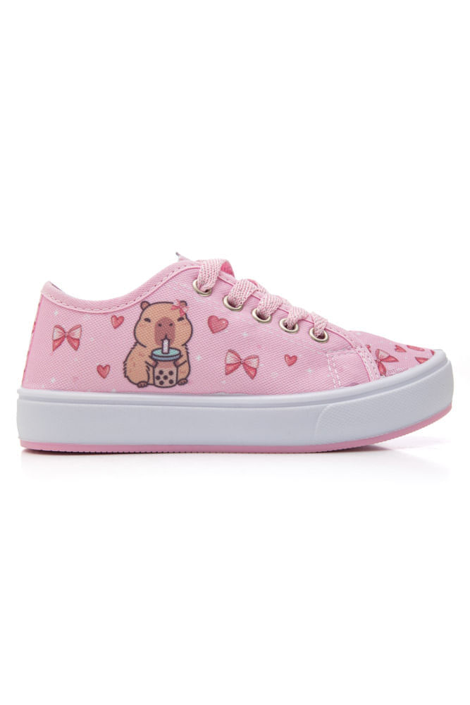 O Tênis Ortobessa Casual Infantil Menina Com Cadarço 19-I/Caplaco é um calçado encantador, ideal para acompanhar as pequenas em todos os momentos do dia. Pertencente à categoria casual infantil, o modelo é confeccionado em lona resistente, com cabedal estampado por uma capivara fofa, corações e laços delicados que dão um toque divertido e cheio de personalidade. O bico arredondado garante liberdade aos dedos, enquanto o fechamento por cadarço permite um ajuste firme e confortável. Possui colarinho acolchoado, palmilha macia e acabamento interno suave, oferecendo máximo conforto. Já o solado de borracha antiderrapante proporciona segurança a cada passo, ideal para o dia a dia ativo das crianças.