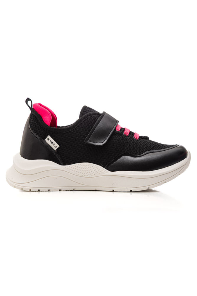 O Tênis Ortofino Casual Juvenil Menina Cadarço Elástico 4409f é perfeito para acompanhar a rotina com conforto, estilo e praticidade. Da categoria tênis juvenil casual, possui cabedal confeccionado em material têxtil respirável, com reforços em material sintético que garantem maior durabilidade e proteção. A sola é em material emborrachado, leve e antiderrapante, oferecendo segurança ao caminhar. O bico é arredondado, favorecendo o conforto dos pés. O fecho combina cadarço elástico com tira em velcro, facilitando o calce e proporcionando ajuste firme. O colarinho é acolchoado, assim como a palmilha macia, que auxilia na absorção de impacto. Conta ainda com calcanheira estruturada e acabamento interno suave. A estética esportiva moderna se destaca pelos detalhes em rosa contrastando com o preto, trazendo charme ao visual. Um grande benefício é o conforto prolongado para uso diário.