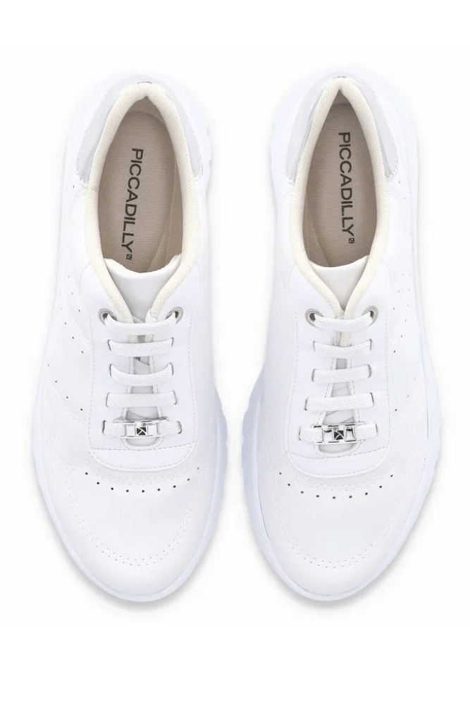 Para um look casual elegante, combine o tênis Piccadilly slip on com calça jeans de corte reto ou pantalona, blusa básica em tom neutro e blazer leve. Finalize com bolsa tiracolo estruturada e acessórios dourados discretos, criando uma produção confortável, moderna e perfeita para trabalho informal, passeios ou compromissos do dia a dia.