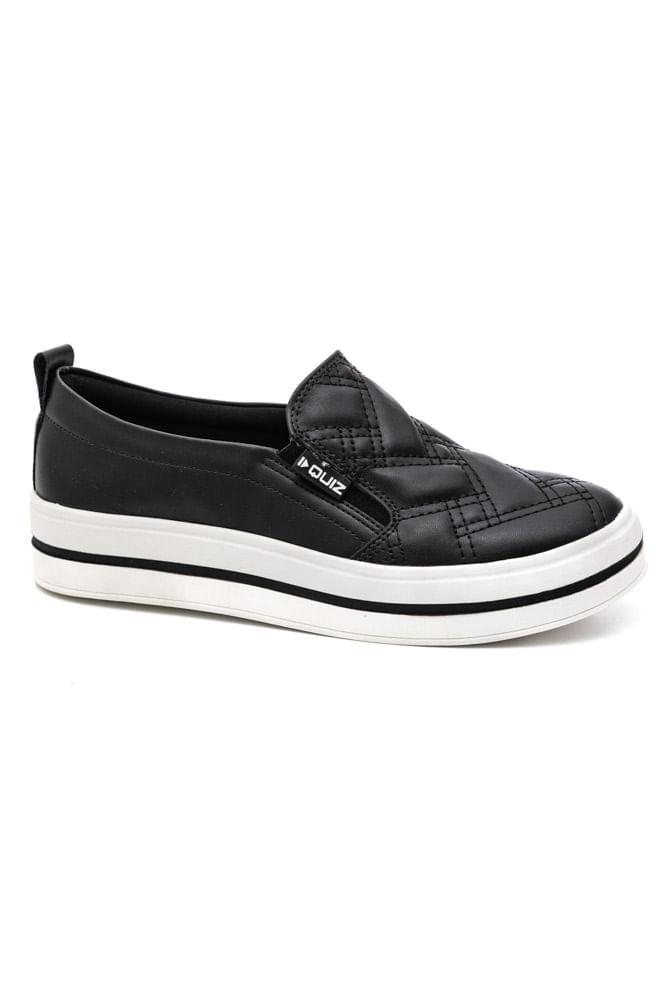 Combine o Tênis Quiz slip on feminino com jeans skinny azul, camiseta básica branca e jaqueta jeans oversized para um visual casual moderno. Acrescente acessórios delicados, como colares finos e uma bolsa transversal pequena. Esse look é perfeito para passeios, encontros informais ou um dia de trabalho descontraído, garantindo conforto e estilo o dia todo.