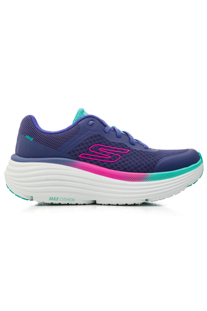 O Tênis Skechers Feminino Corrida Max Endeavour 129470-Prtq entrega desempenho e conforto para treinos e uso diário. O cabedal em mesh respirável com overlays garante leveza e ventilação, enquanto a biqueira arredondada oferece conforto aos dedos. O fechamento em cadarço assegura ajuste preciso. Possui lingueta e colarinho acolchoados, forro têxtil e calcanheira estruturada para estabilidade. A palmilha Air-Cooled amplia a respirabilidade. A entressola Max Cushioning® oferece amortecimento alto, absorção de impacto responsiva e drop de 7 mm, favorecendo transições suaves. O solado de borracha com alto grip garante tração segura. Com puxador traseiro, design vegano e visual esportivo moderno, o benefício é conforto técnico prolongado com suporte leve em cada passada.