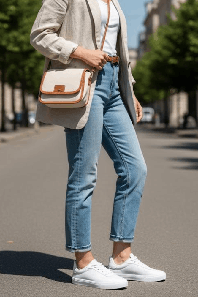 Para um passeio casual elegante, combine o Tênis Yoa Casual com uma calça jeans reta de lavagem clara e uma blusa de tecido leve em tom pastel. Acrescente um cardigan oversized ou jaqueta leve, bolsa tiracolo neutra e acessórios delicados, como brincos pequenos. Esse look une conforto e estilo, perfeito para um dia descontraído com toque moderno.