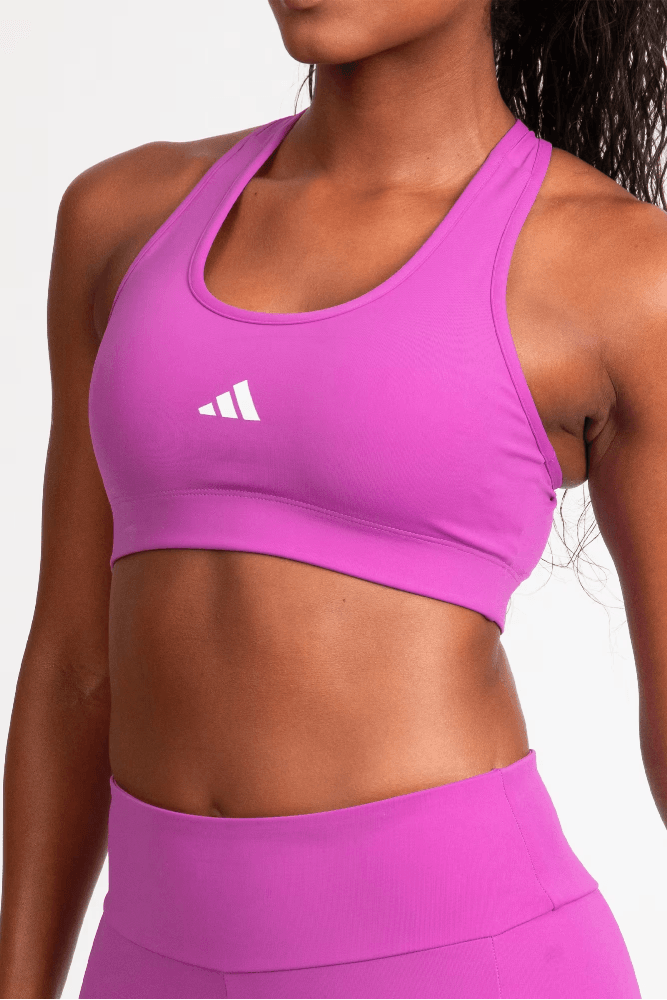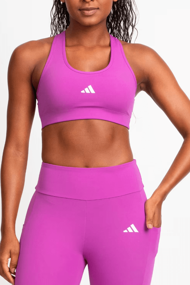 Para um treino na academia ou atividade ao ar livre, combine o top adidas com uma legging de cintura alta, tênis esportivo com bom amortecimento e jaqueta leve para o aquecimento. Finalize com uma mochila compacta e garrafa térmica. O visual fica moderno, confortável e funcional, garantindo liberdade de movimentos e estilo durante todo o treino.