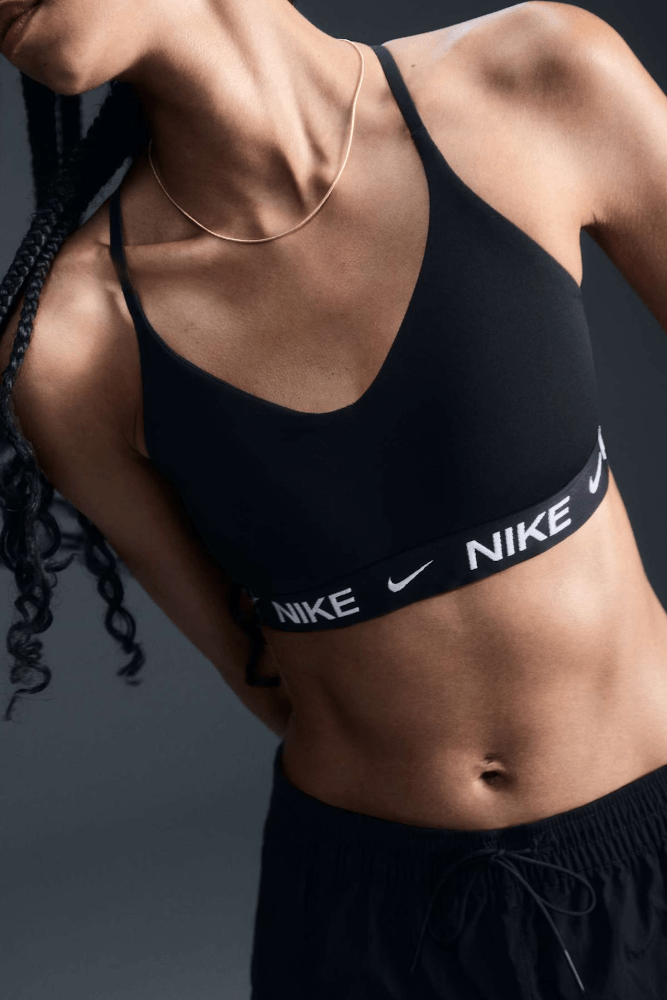Não deixe nada ficar no seu caminho quando você quiser se expressar nesse top esportivo moderno e discreto. Seu suporte leve oferece uma pegada suave com muita liberdade, o que é ótimo para treinos de baixo impacto ou conforto o dia todo. Tecido macio, que seca rápido oferece ao top um acabamento clean para que você possa usá-lo como quiser.Obtenha o ajuste perfeito com alças finas que se ajustam facilmente nas costas. Quer um pouco mais de cobertura e modelagem sutil? Os bojos projetados deslizam pela parte inferior e permanecem no lugar durante a lavagem e o uso para uma silhueta suave e confiável.